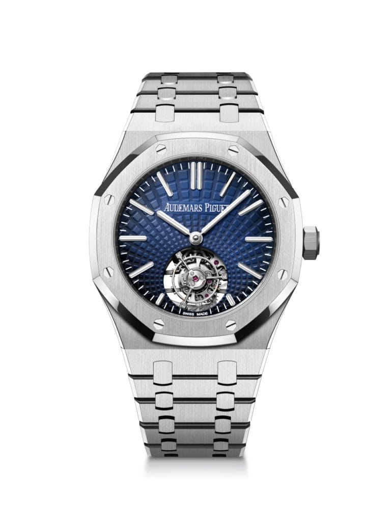 La Manufacture suisse de Haute Horlogerie Audemars Piguet est fière de présenter sa toute première Royal Oak Tourbillon Volant Automatique. Pour célébrer cette occasion, la Manufacture lance trois références en 41 mm respectivement en acier inoxydable, en titane et en or rose 18 carats, toutes dotées d’un cadran raffiné.