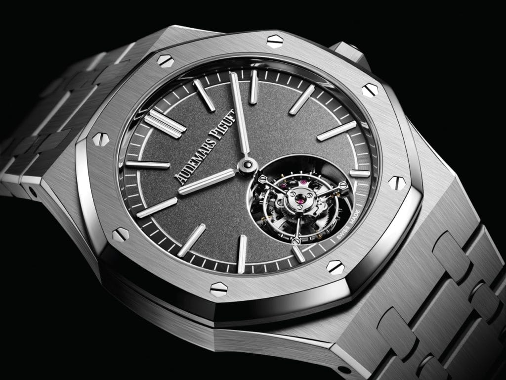 La Manufacture suisse de Haute Horlogerie Audemars Piguet est fière de présenter sa toute première Royal Oak Tourbillon Volant Automatique. Pour célébrer cette occasion, la Manufacture lance trois références en 41 mm respectivement en acier inoxydable, en titane et en or rose 18 carats, toutes dotées d’un cadran raffiné.