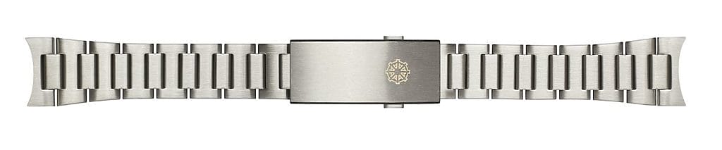 Le bracelet acier reprend le design des plongeuses des années 80 avec ses maillons en H finement brossés, son endlink parfaitement intégré, et sa boucle déployante micrométrique, ajustable sans outil sur cinq crans. Gravée du logo Auricoste et dotée d’inserts lumineux, elle offre confort et adaptabilité, dans un esprit militaire mais raffiné.