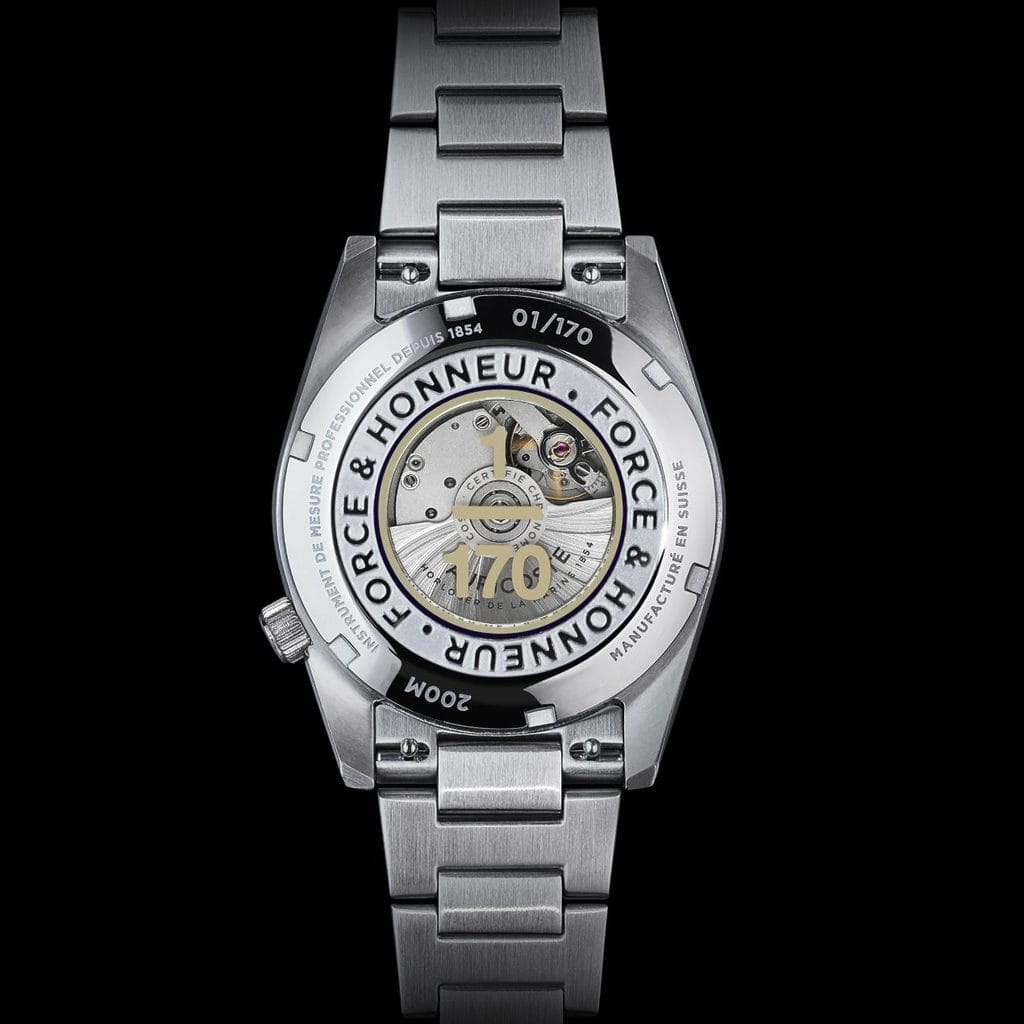À l’occasion de son 170e anniversaire, la maison horlogère française Auricoste dévoile une montre anniversaire en série limitée à 170 exemplaires : la FUSCO. Un garde-temps qui rend hommage aux Fusiliers Commandos de la Marine nationale, ces opérateurs de l’ombre dont la devise – Force & Honneur – incarne l’engagement absolu. Plus qu’un simple slogan, ces mots sont gravés au dos de chaque pièce et symbolisent une ligne de conduite intemporelle.