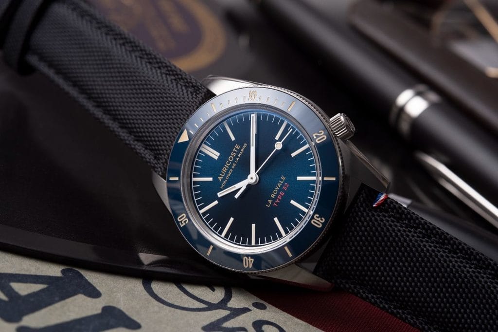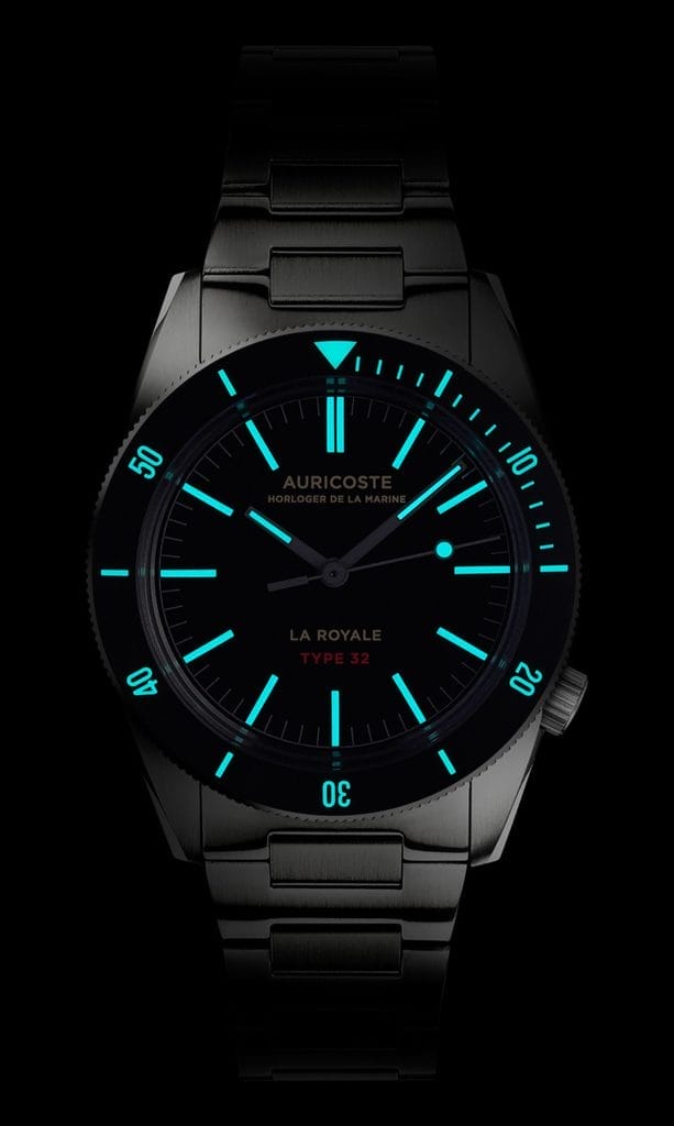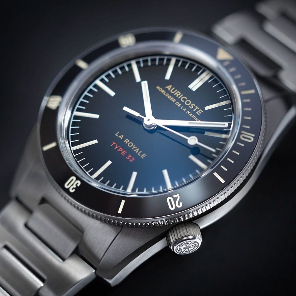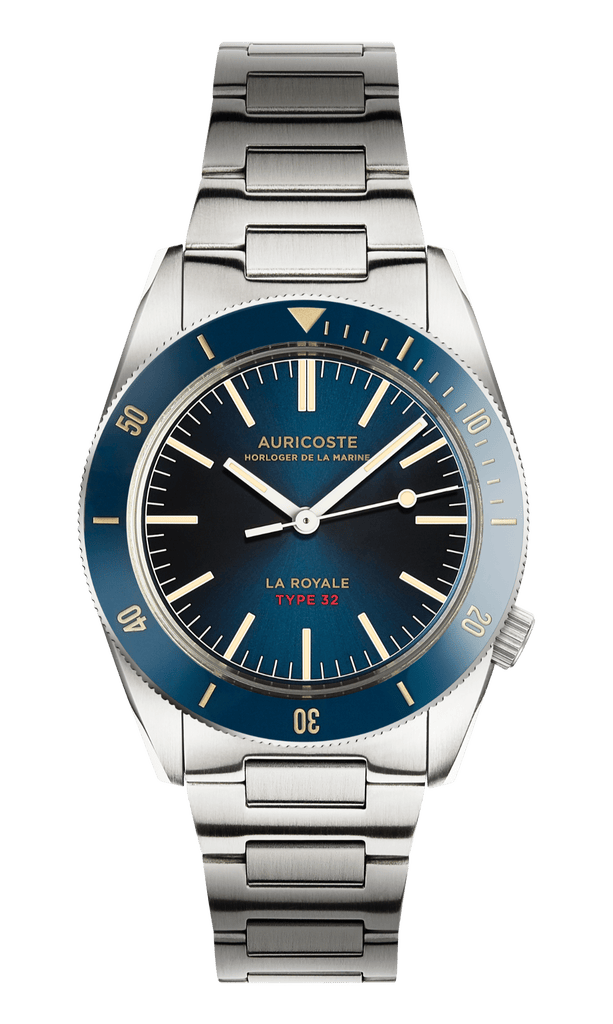 Dernier-né d’une lignée débutée en 1954 avec le Type 20, le Type 32 s’inscrit pleinement dans la tradition des créations Auricoste, conçues comme des réponses fonctionnelles à des missions précises. Il réunit l’esprit militaire de la marine et une sophistication contemporaine, pour une montre aussi élégante en ville que performante en mer.
