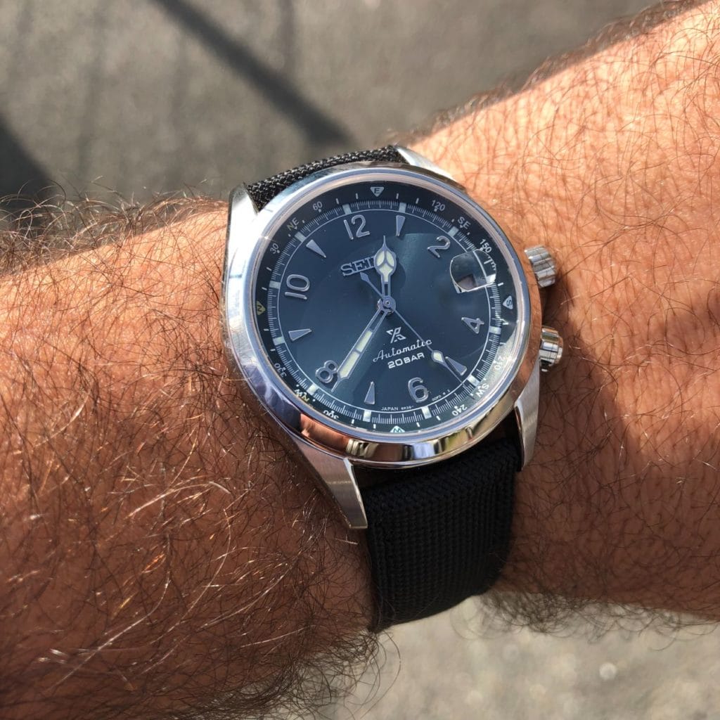Ce bracelet est d’une excellente qualité. Avec des finitions irréprochables, notamment au niveau des surpiqûres et de la doublure en microfibre finition daim. Un peu rigide, les premiers jours, il s’assouplit rapidement et en devient très confortable. Le canvas apporte une petite touche « baroudeuse » aux montres sur lequel on l’installe, et mon Alpinist ne fait pas exception à la règle. Mais c’est cohérent avec les origines et les spécifications de la montre, et le combo est juste parfait.