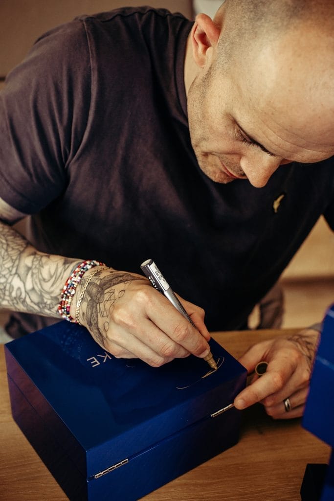 Chaque pièce est livrée dans un écrin noir mat sérigraphié, personnalisé par Chris Alexander avec un mot fort : Dream, Transform, Create, Eternal, Rise, Fearless… Autant de concepts qui prolongent l’esprit du serpent et les intentions profondes de cette collaboration.