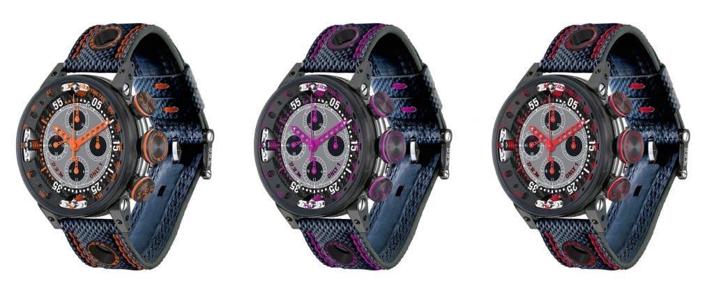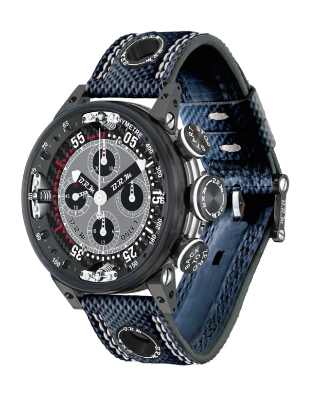 Ce bijou horloger est par ailleurs, comme tous les garde-temps de la marque doté d’un boîtier taillé dans la masse, d’aiguilles ajourées ou siglées B.R.M et d’un bracelet à perforations Racing en tissu technique à mémoire de forme. Son esprit sport assumé et sa déclinaison de couleurs (chacune étant une pièce unique «Only 1»), plairont sans conteste à tous les fans de la marque et aux amateurs de grosses cylindrées.