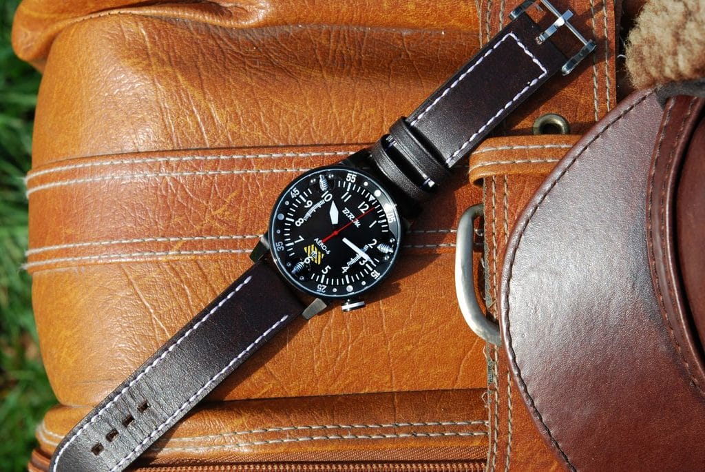 Le bracelet en cuir lisse et brillant rappelle les vestes d’aviateurs et apporte une touche d’élégance à cette montre sobre mais sportive. Il se décline en deux coloris au choix, noir ou marron, accompagné d’une simple couture blanche entièrement réalisée à la main. L’ensemble offre une sensation très agréable au toucher, ainsi qu’une excellente maniabilité montre au poignet.