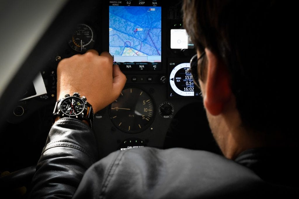 Le mouvement automatique offre une précision exceptionnelle avec 28 800 alternances par heure et 25 rubis. Le cadran plein noir, a été spécialement développé pour que l’œil du pilote aguerri y retrouve les codes de l’univers aérien. La minuterie est discrète, à 3h et 9h des index rappellent l’indicateur de virage ou gyroscope. Des bandes réfléchissantes jaunes en référence aux bandes de marquage au sol qui guide les équipages aériens, pilotent le regard vers le dato. Enfin, pour vous guider dans le temps, des aiguilles Cockpit rehaussées de Superluminova® finissent de parfaire cet instrument de bord.