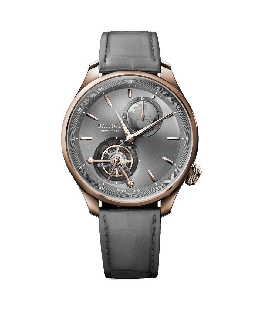 Le Chapitre 4 GMT Tourbillon Édition Limitée 2025 se porte sur un bracelet en cuir nubuck gris, dont la texture raffinée souligne l’équilibre entre rigueur technique et esthétique contemporaine. Fidèle à la philosophie de BA111OD, cette création incarne une vision singulière : rendre accessible une complication prestigieuse, rare dans l’univers horloger.
