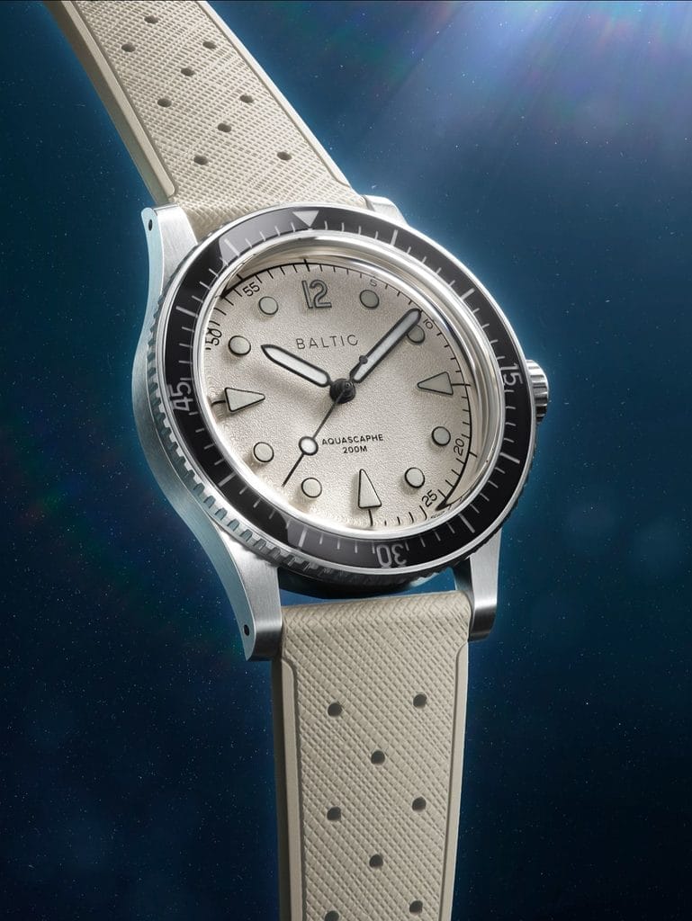 Baltic propose l’Aquascaphe MK2 avec pas moins de cinq nouveaux bracelets Rubber Classic. Leur design exclusif reprend le motif d’un cuir saffiano, associé à la résistance du caoutchouc vulcanisé FKM. Élégants et confortables, ils se positionnent comme une alternative raffinée aux bracelets métal Grain de riz et Flat Link, également disponibles.