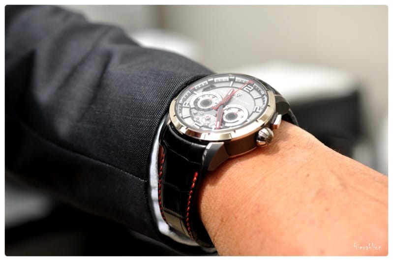 Il est à noter que les aiguilles sont réalisées en titane et rubis, rehaussées de luminova.