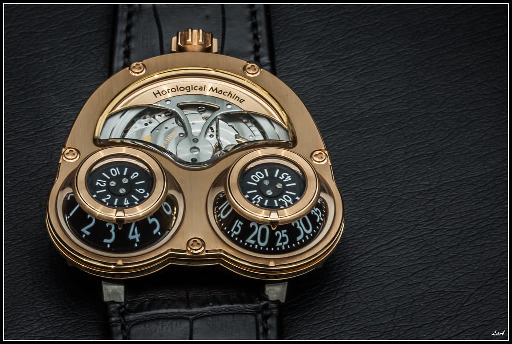 Pièce iconique de la marque et de sa collection Horological Machines, la HM3 évolue de sa version « Starcruiser » vers un modèle encore plus lisible : sur une suggestion de Stepan Sarpaneva quant à la mise en valeur de son grand rotor en forme de hache bipenne modernisée façon Odyssée de l‘Espace, elle devient ainsi « Megawind » dans la réalisation qu‘en ont faite conjointement Eric Giroud pour le design et Jean-Marc Wiederrecht pour la conception technique.
