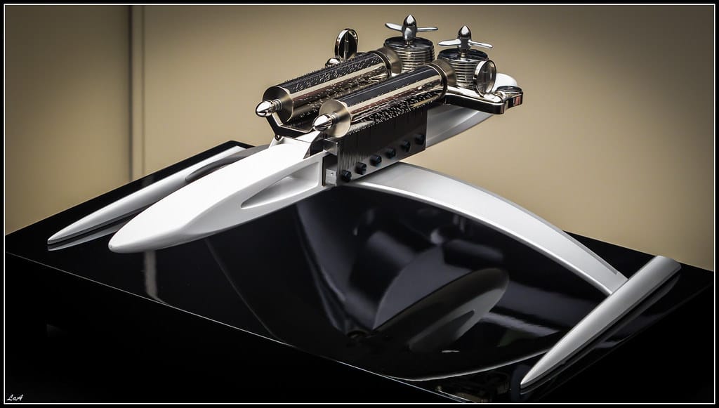 L’autre merveille présentée n’est autre qu’une collaboration inédite entre MB&F et la maison REUGE, spécialisée depuis 150 ans dans la réalisation de boîtes à musique d’exception. Tout en nous immergeant de nouveau dans l’univers des vaisseaux de l’espace, la « Music Machine » nous offre le premier modèle de la collection des œuvres d’art non spécifiquement horlogères de MB&F.