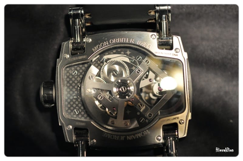 Le mouvement a été réalisé par la manufacture genevoise Agenhor, Jean-Marc Wiederrecht, en exclusivité pour Romain Jérôme. Il combine quatre fonctions : heure latérale, linéaire, sautante et rétrograde.