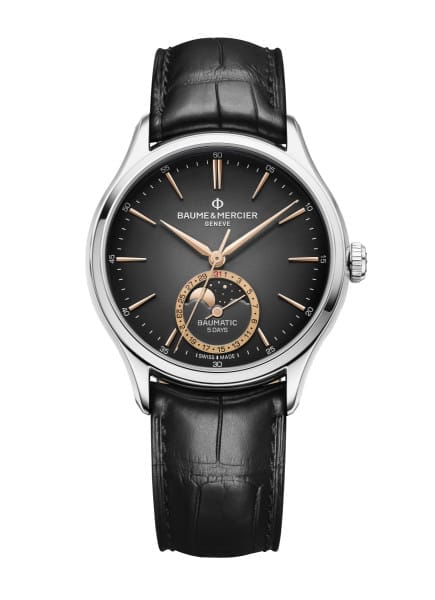 Le mouvement manufacture automatique Baumatic est logé dans ce beau garde-temps.