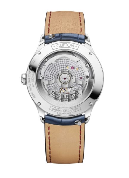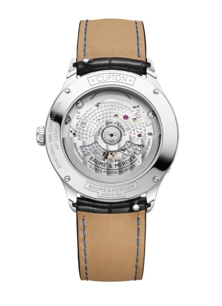 L’horlogerie haut de gamme que Baume & Mercier propose offre le même sérieux du côté de la fiabilité technique des calibres qui équipent ses montres. Le mouvement manufacture Baumatic que la Maison a conçu dans ses ateliers des Brenets anime les Clifton M0A10756 etM0A10758. Sa remarquable technicité leur assure durabilité, performance et confort. Il résiste aux champs magnétiques du quotidien jusqu’à 1500 Gauss. Son implacable précision est de -5/+10 par jour ; et sa fréquence, de 4Hz (28 800 vph). Il bénéficie d’une autonomie remarquable grâce à sa réserve de marche de 5 jours (120 heures) et d’une étanchéité atteignant 5 ATM (approximativement 50 m).