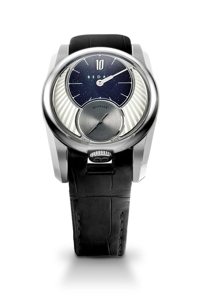 L’Eclipse se distingue dans l’univers très concurrentiel des montres Swiss Made grâce à une présentation originale des heures et minutes, ainsi qu’un tarif équilibré.