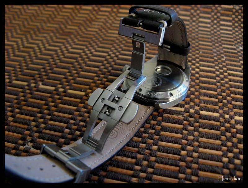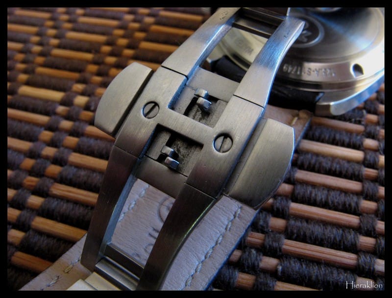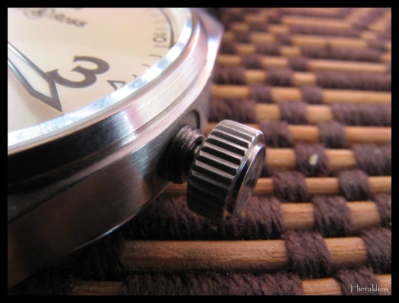 • le fond du guichet blanc sur le fond beige du cadran. Moi, qui ne suis pas du tout fan des guichets de date ou autre dont le fond n’est pas de la même couleur que le cadran, je trouve ce mariage au contraire très réussi,
