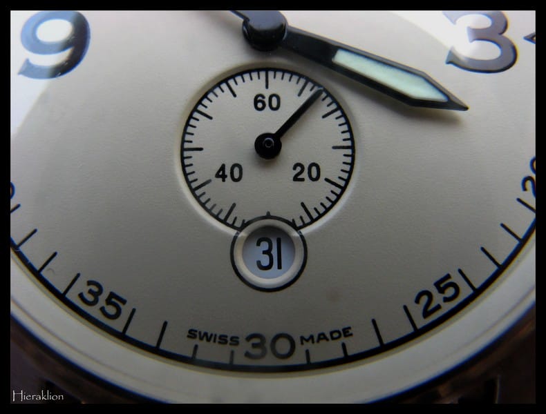 • le chanfrein visible à l’intersection du cadran des secondes et du guichet de date. Je trouve ce détail superbe pour ma part.