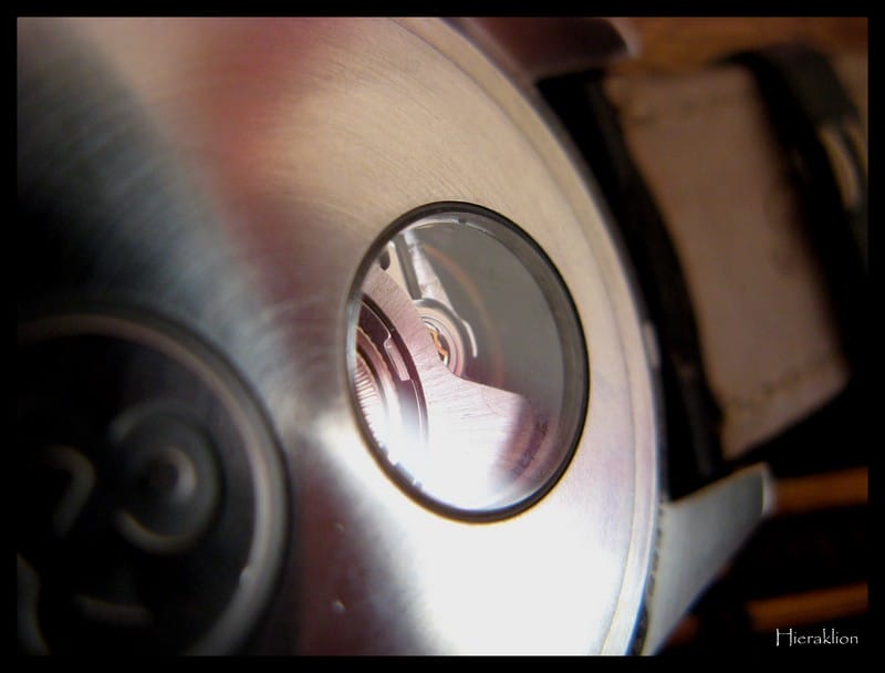 • Fond avec verre saphir centré sur le balancier,