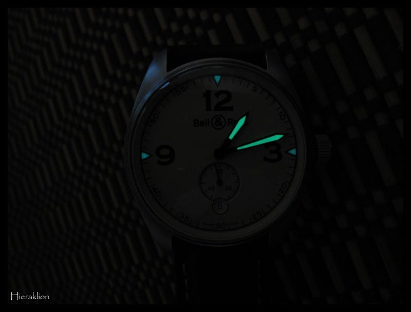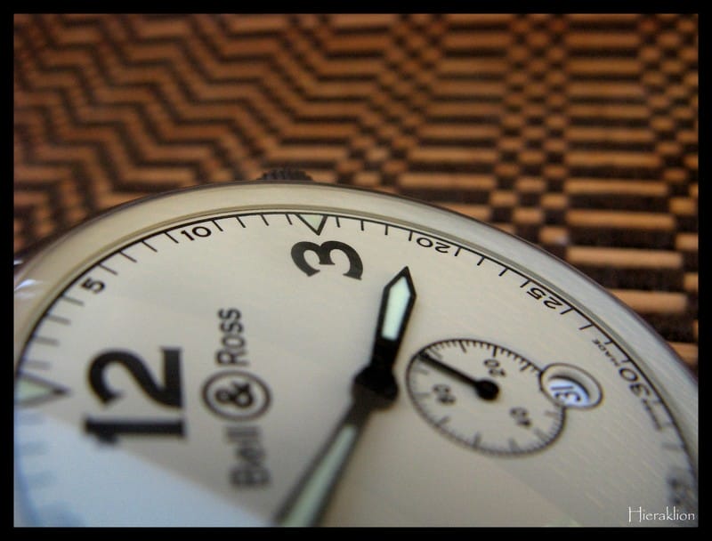 Lorsque l’on pense Bell & Ross, on pense généralement à la collection « BR Instruments » avec les BR 01 et les BR 03 et ce n’est pas « The Dude » qui va me contredire …La « Vintage 123 » est une montre classique, au design pur à laquelle je trouve un certain charme désuet, voire « colonial » avec son cadran beige, ses chiffres arabes, sa taille et son association avec un bracelet cuir marron d’origine avec une piqûre beige.