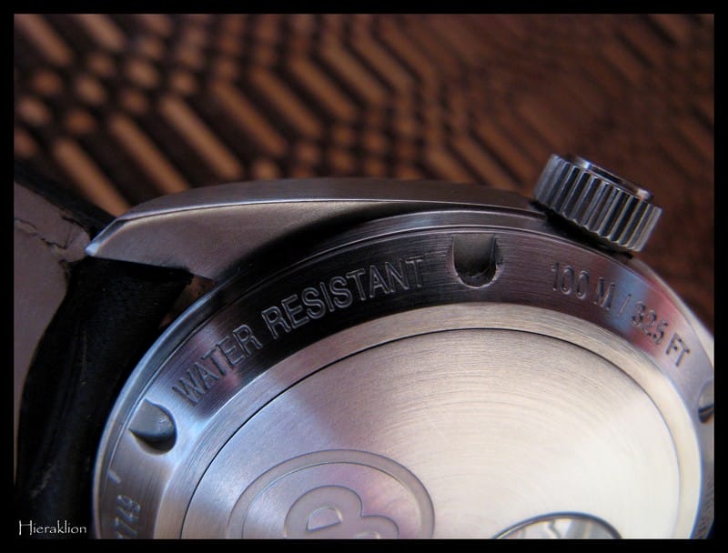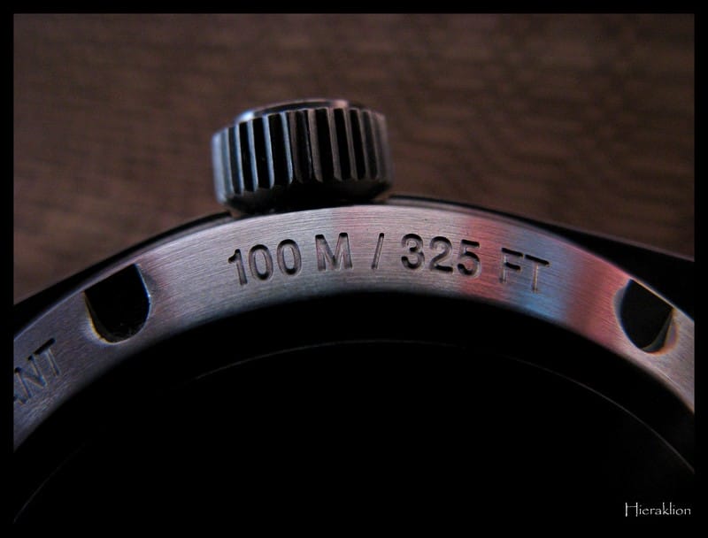 L’inscription “100M” et “Water resistant” :