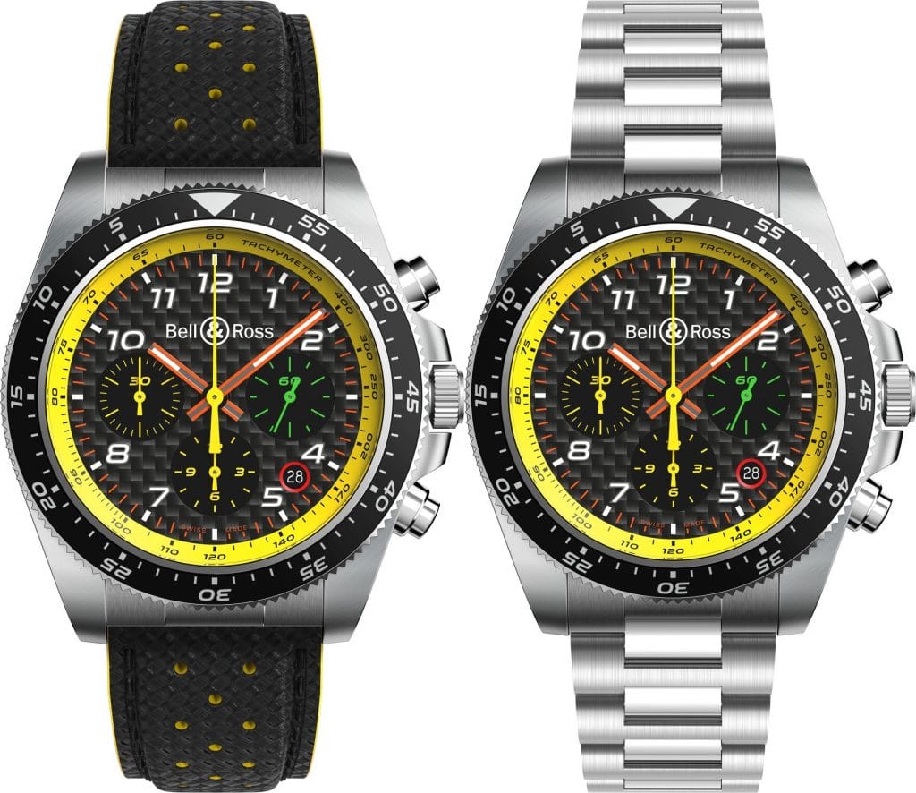La collection R.S.19 de Bell & Ross se démarque avec deux chronographes à cadran en carbone, aux couleurs identiques à celles des volants de Daniel Ricciardo et Nico Hülkenberg.
