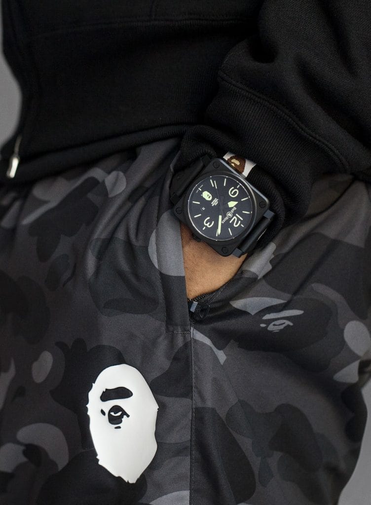 BAPE, la célèbre marque japonaise spécialisée dans les vêtements urbains de luxe, a sélectionné 25 partenaires, dont Bell & Ross, pour fêter son 25e anniversaire. Au-delà d’incarner une marque, Bape et Bell & Ross, symbolisent un style de vie. Cette collaboration est née d’une passion commune pour la conception de produits fonctionnels avec une identité forte et un goût prononcé pour le style militaire. Elle représente l’excellence du Street style japonais et le Savoir-faire français. La collection capsule réalisée par Bell & Ross a été dévoilée lors de la récente exposition « BAPE XXV » à Tokyo, au Japon.