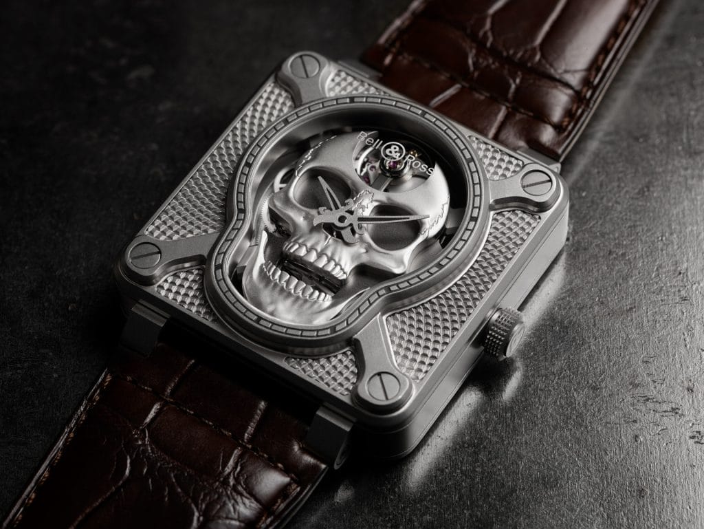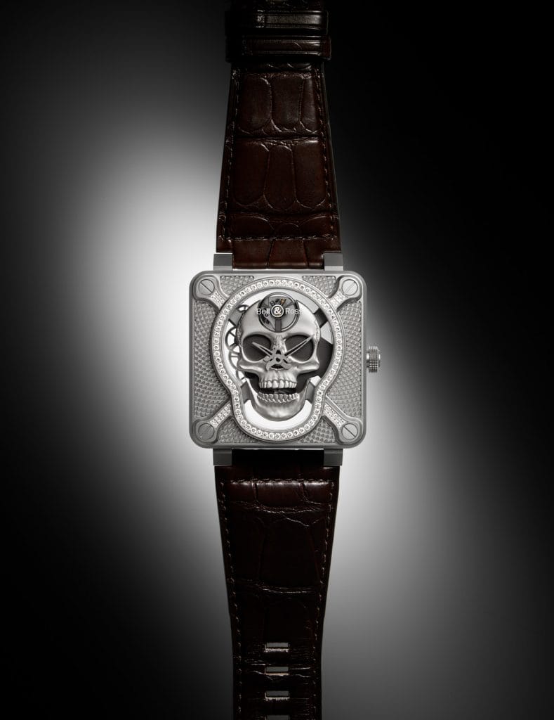 Bell & Ross aime briser les codes, sortir des sentiers battus. Dès ses débuts, cette maison horlogère lance des montres concepts qui font aujourd’hui partie intégrante de son ADN. Dans cette veine, la BR 01 “Tête de mort” présentée en 2009, est parmi les premières à surfer sur le courant des montres Skull. Succès aidant, Bell & Ross propose en 2011, deux nouveaux modèles en édition limitée, dont le fameuse BR 01 Tourbillon Skull. Une troisième série revisitée, apparaît en 2015. Cette collection adopte un boîtier en bronze qui se patine au fil du temps, transformant chaque exemplaire en un objet unique. En 2016, Bell & Ross innovait avec le concept BR 01 Burning Skull dont le boîtier gravé se parait d’une laque noire rappelant l’encre des tatoueurs.