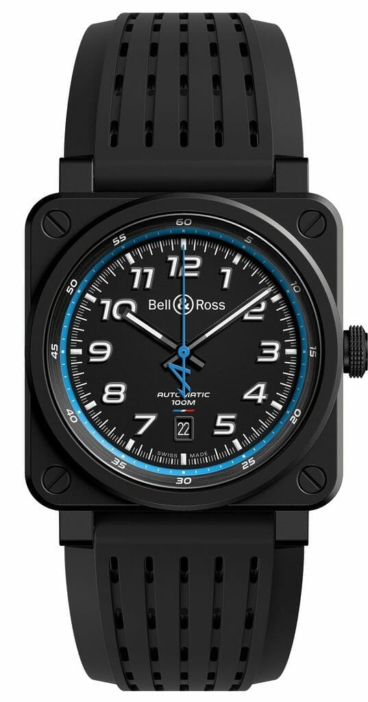 Côté mécanique, la BR03-92 A522 est animée par le mouvement BR-CAL.302 automatique, affichant heures, minutes, secondes et date. Enfin, un bracelet en caoutchouc micro-perforé ultra respirant assure un confort inégalé au porté.