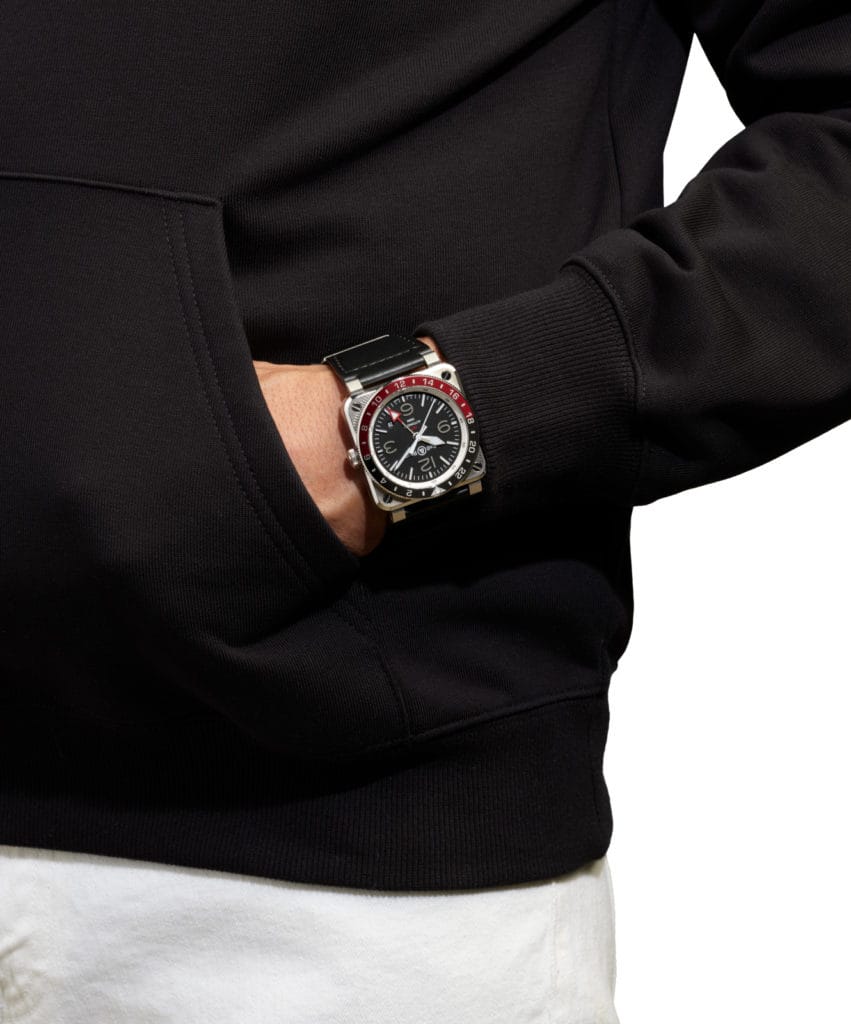 Traditionnellement en l’horlogerie, la fonction GMT été développée pour répondre aux besoins et spécifications des aviateurs, notamment des pilotes. L’acronyme GMT est utilisé pour indiquer un second fuseau horaire mais pas nécessairement celui de Greenwich. Cette complication a depuis été démocratisée et, est aujourd’hui l’outil incontournable des grands voyageurs. Bell & Ross a fait de l’aviation, plus particulièrement des instruments aéronautiques, sa spécialité. Ses designs correspondent aux spécifications créées par et pour des utilisateurs professionnels.