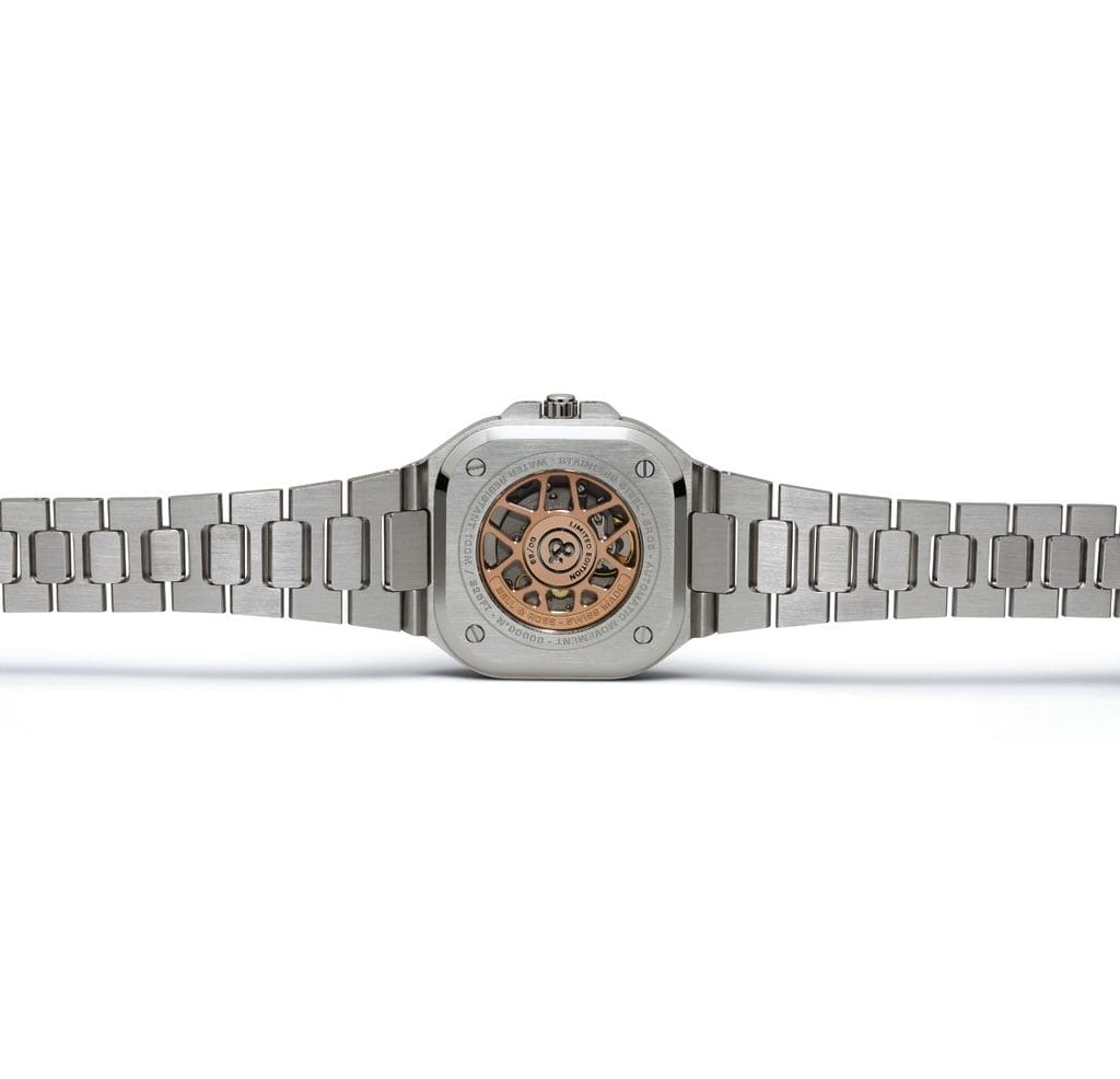 Les grands chiffres typiques des indications horaires de Bell & Ross, font place à des index bâtons recouverts de matière luminescente comme les aiguilles des heures et des minutes. Pour cette série limitée très exclusive de 99 pièces, celle des secondes est en or pour épouser le nouveau coloris exclusif du cadran. Un brun soleillé lumineux qui nécessite une technique spécifique de réalisation. Pour obtenir l’effet désiré, il est en effet nécessaire d’enduire la plaque de métal dans laquelle est taillé le cadran d’un vernis teinté brun. Ce cadran habille un mouvement automatique d’origine suisse précis et performant, le calibre BR-CAL.321-1, doté d’une confortable réserve de marche de 54 heures. Un fond saphir, au dos de cette montre de 40 mm étanche à 100 mètres, permet de découvrir les finitions et la masse oscillante complète à 360°.