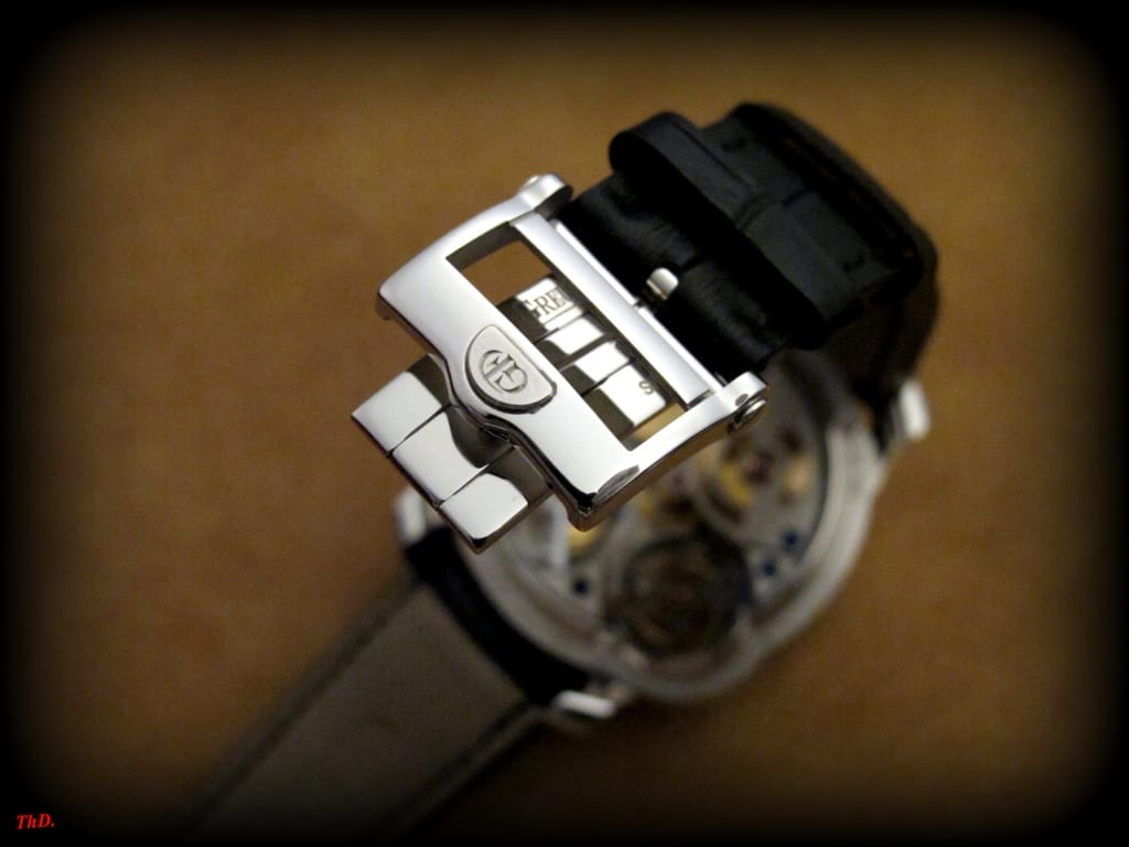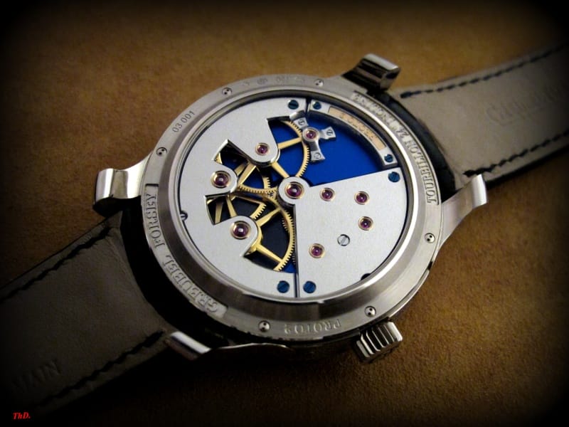 Comme pour toutes les créations Greubel Forsey, tout est fini à la main. Cela se remarque notamment dans la réalisation des anglages, impossibles à effectuer par une machine.