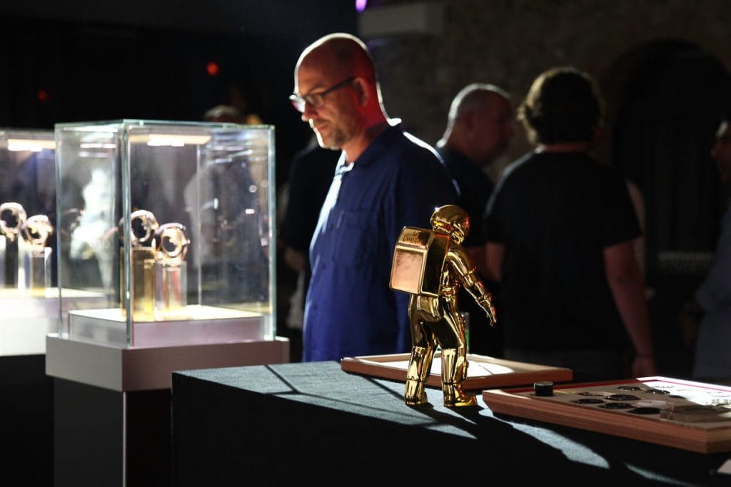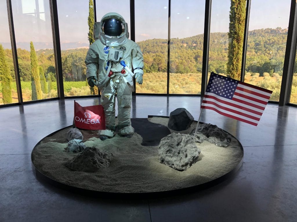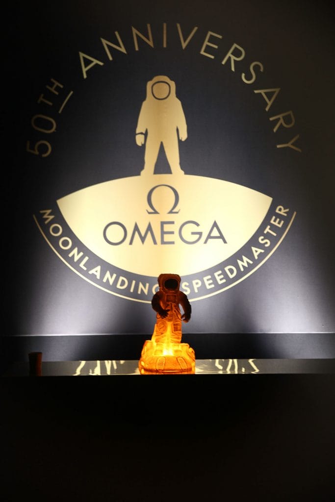 Un décor exceptionnel était installé pour l’occasion. Photocall, buffet lunaire, cosmonautes de toutes tailles rappelaient le thème de la soirée. Mais surtout, des vitrines dédiées à la collection Speedmaster d’Omega.