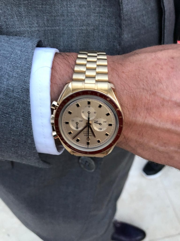 En effet, souvenez vous que Neil Armonstrong avait laissé son Omega Speedmaster à l’intérieur du module, et que la photo où l’on voit pour la première fois une Omega Speedmaster sur la Lune est une photo de Buzz Aldrin.