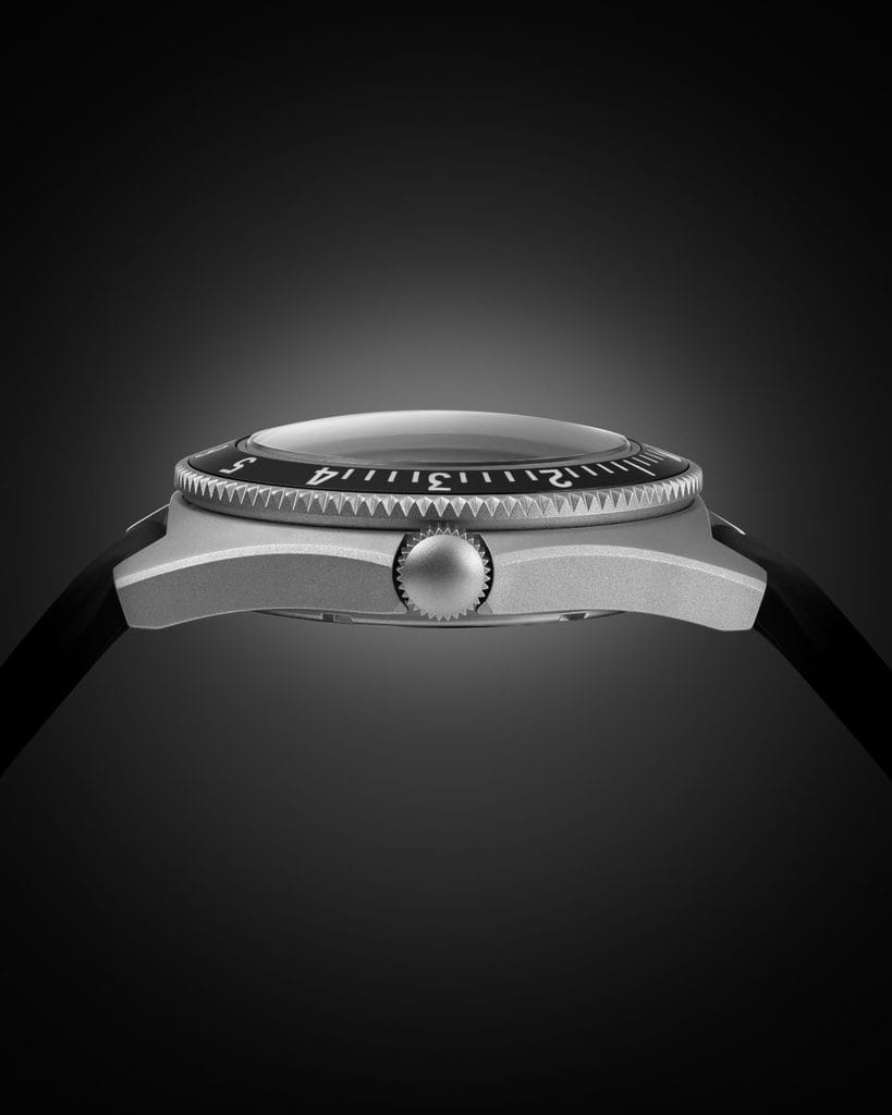 Son architecture fonctionnelle, lunette bidirectionnelle à friction, cadran noir mat, index luminescents, barrettes fixes et boîtier parkerisé, en fait un instrument d’une fiabilité absolue dans les environnements les plus hostiles.