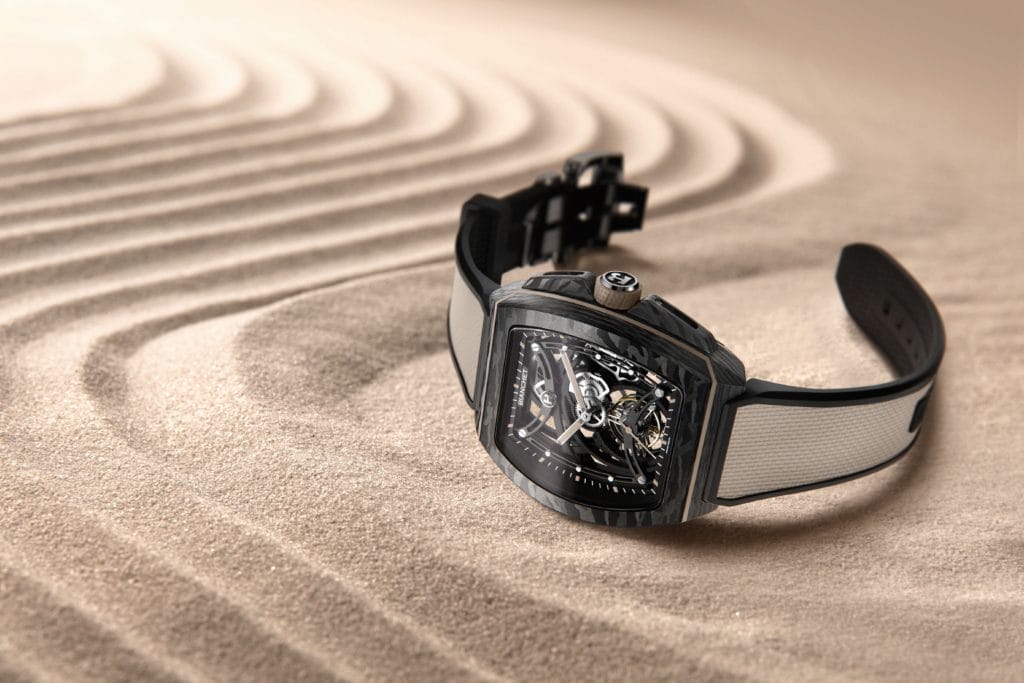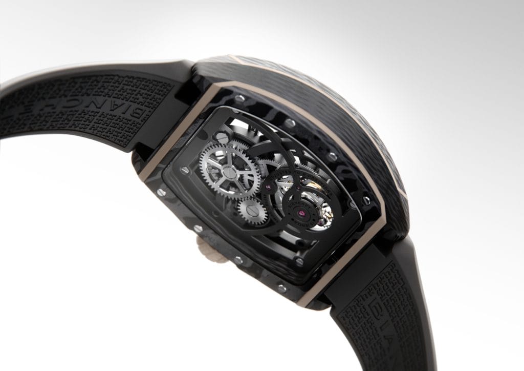 A la fois surprenante et évidente, cette approche de la montre-bracelet trouve son expression dans la Bianchet Tourbillon B1.618 Openwork Carbon Earth.