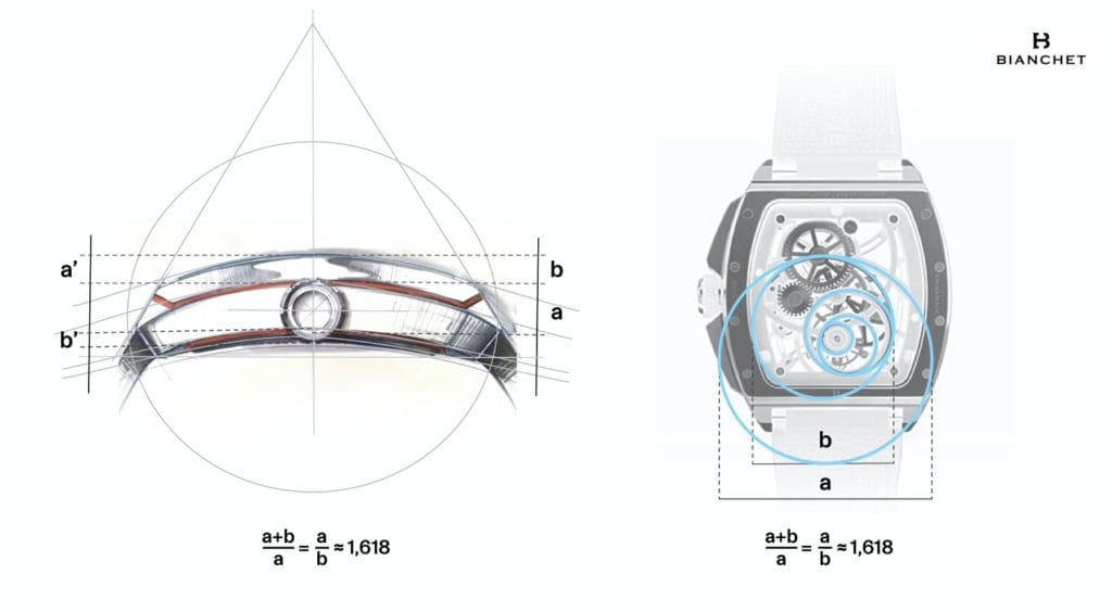 Le rapport entre sens et culture, mathématique et mécanique sont un fondement de la pensée de Bianchet qui s’inspire des travaux du mathématicien italien Leonardo Fibonacci et du Nombre d’Or de 1,618 pour transposer dans le monde de la haute horlogerie contemporaine, les proportions mathématiques qui sous-tendent la beauté de l’univers.