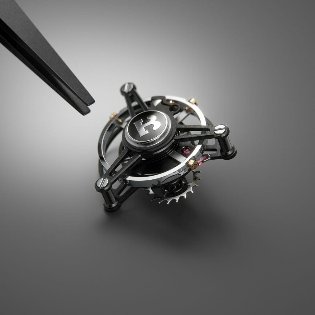 Cage de tourbillon en titane, montée sur roulements à billes