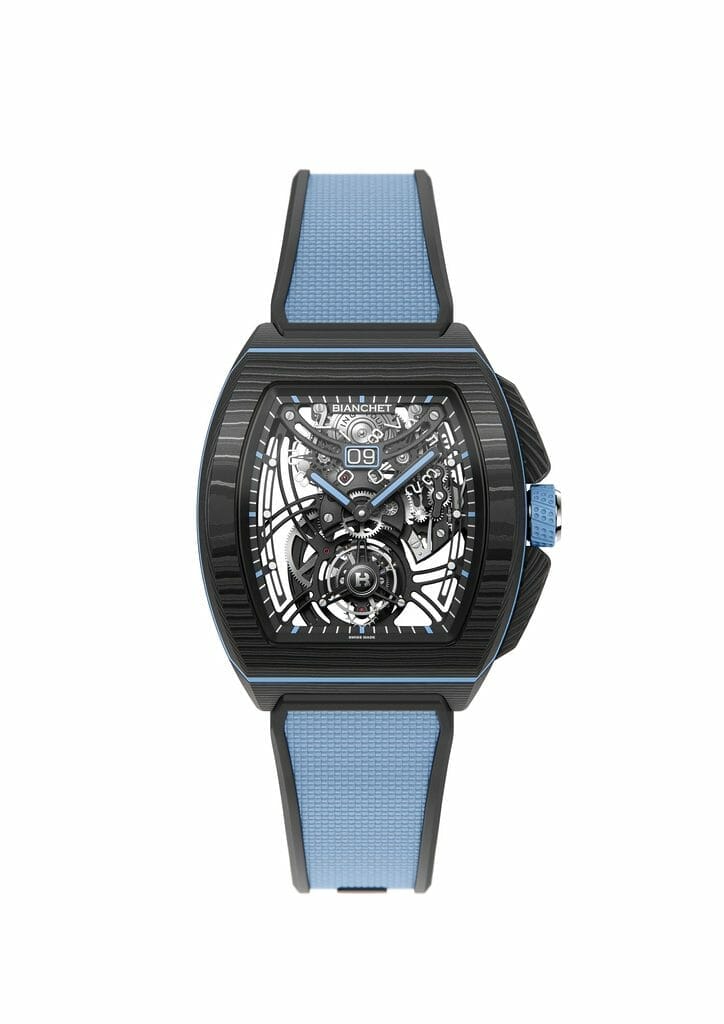 La montre “Flying Tourbillon Grande Date B1.618” ne sera produite qu’en 200 exemplaires en 2023, Bianchet offrant à ses clients la possibilité de choisir entre huit déclinaisons de couleurs.