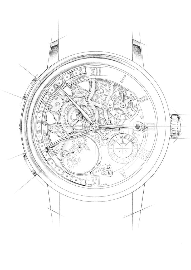 Une montre de ce rang devait intégrer un calendrier perpétuel. Pour préserver l’ouverture du mouvement, Blancpain a choisi de l’intégrer directement plutôt que de l’ajouter sous forme de module.