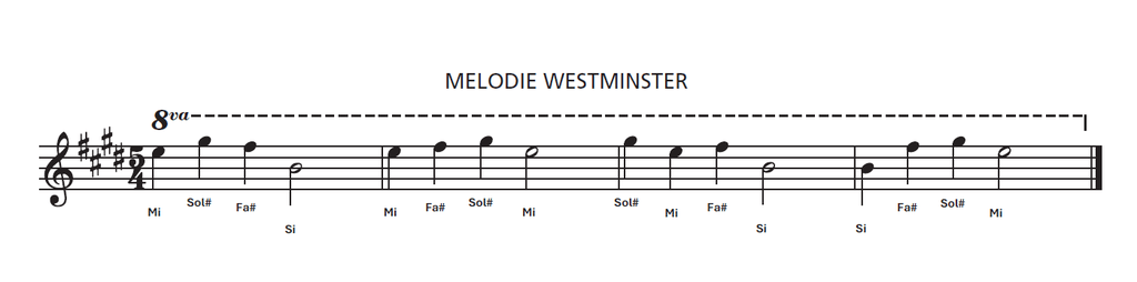 La mélodie de Westminster, l’une des deux utilisées par la Grande Double Sonnerie, remonte à 1793 dans l’église St. Mary’s the Great à Cambridge. Sa diffusion par Big Ben lui a donné son nom actuel.