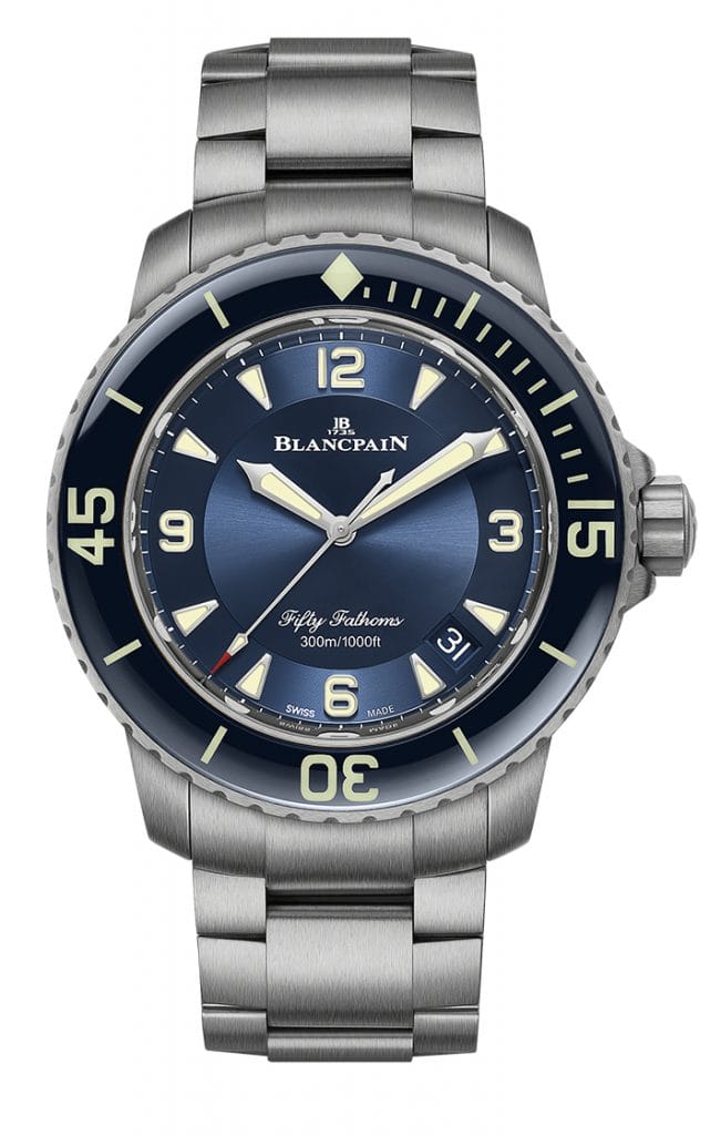 Depuis le lancement de la première montre de plongée moderne il y a plus de 65 ans, Blancpain ne cesse d’innover en associant matériaux et techniques horlogères de pointe. Cette année, la Marque équipe d’un bracelet en titane trois versions de l’iconique Fifty Fathoms. Ces pièces à l’allure sportive et chic à la fois se caractérisent également par leurs performances et leur légèreté hors du commun.