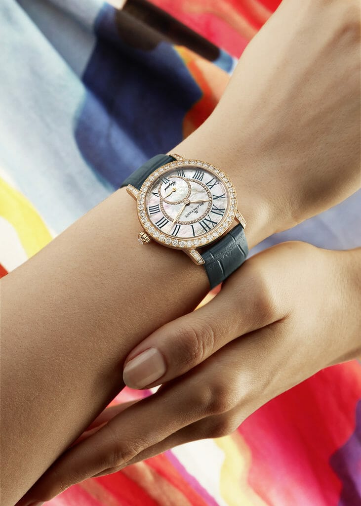 · petite seconde · cadran en nacre serti de diamants · automatique