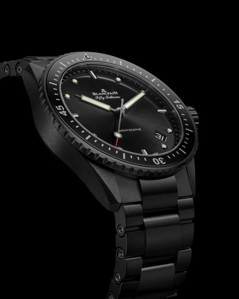 1953 marquait la naissance de la Fifty Fathoms, première véritable montre de plongée, alors utilisée en tant que réel outil par les plongeurs professionnels. 1956 marquait la venue au monde de sa version urbaine : la Bathyscaphe. Pensée pour être portée au quotidien tout en offrant la possibilité d’explorer les fonds marins, cette ligne Bathyscaphe se présentait sous un autre format, avec un diamètre moindre. Aujourd’hui, elle renforce l’essence de sa création en accueillant un modèle dynamique mêlant couleur captivante et céramique.