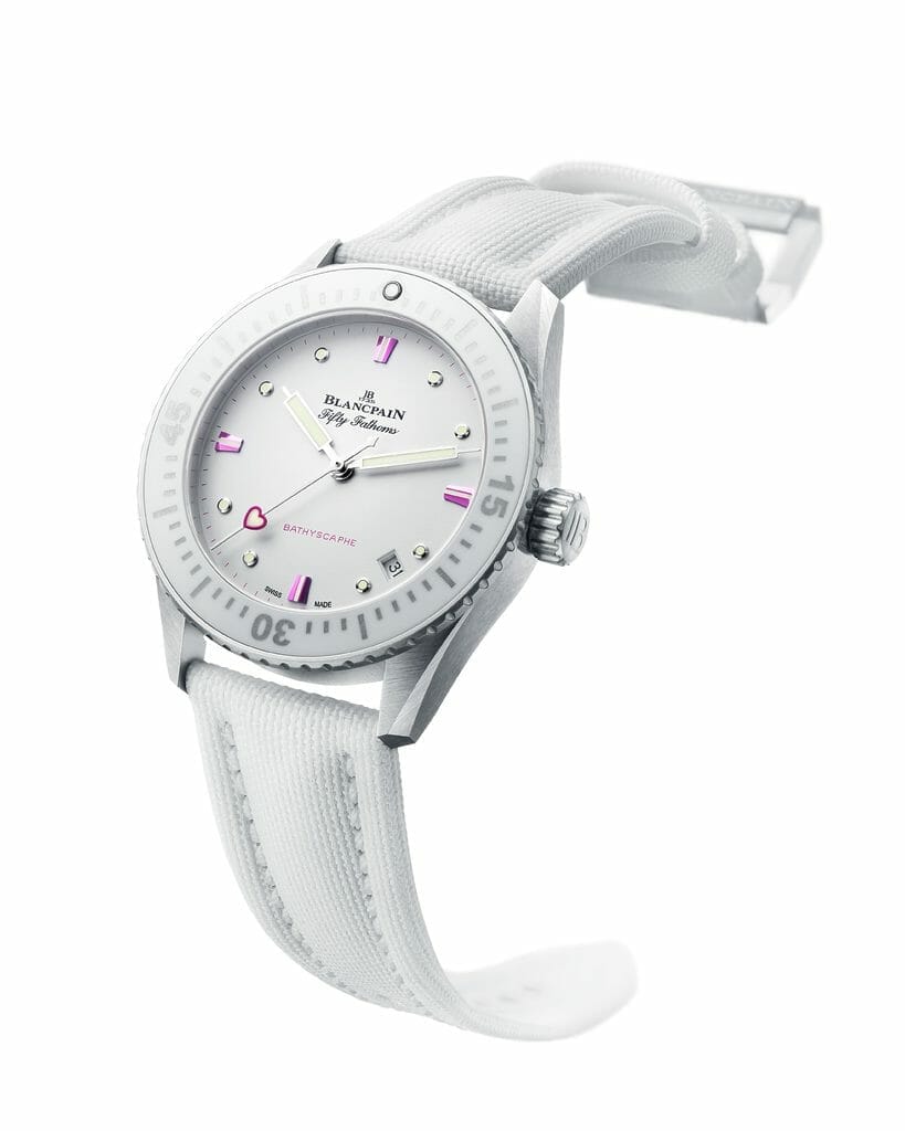 Impétuosité et douceur qualifient ainsi la Fifty Fathoms Bathyscaphe « Saint-Valentin 2023 ». Ces antonymes, qui s’expriment de face comme de dos sur les 99 exemplaires composant la série limitée, représentent l’essence même de l’amour.
