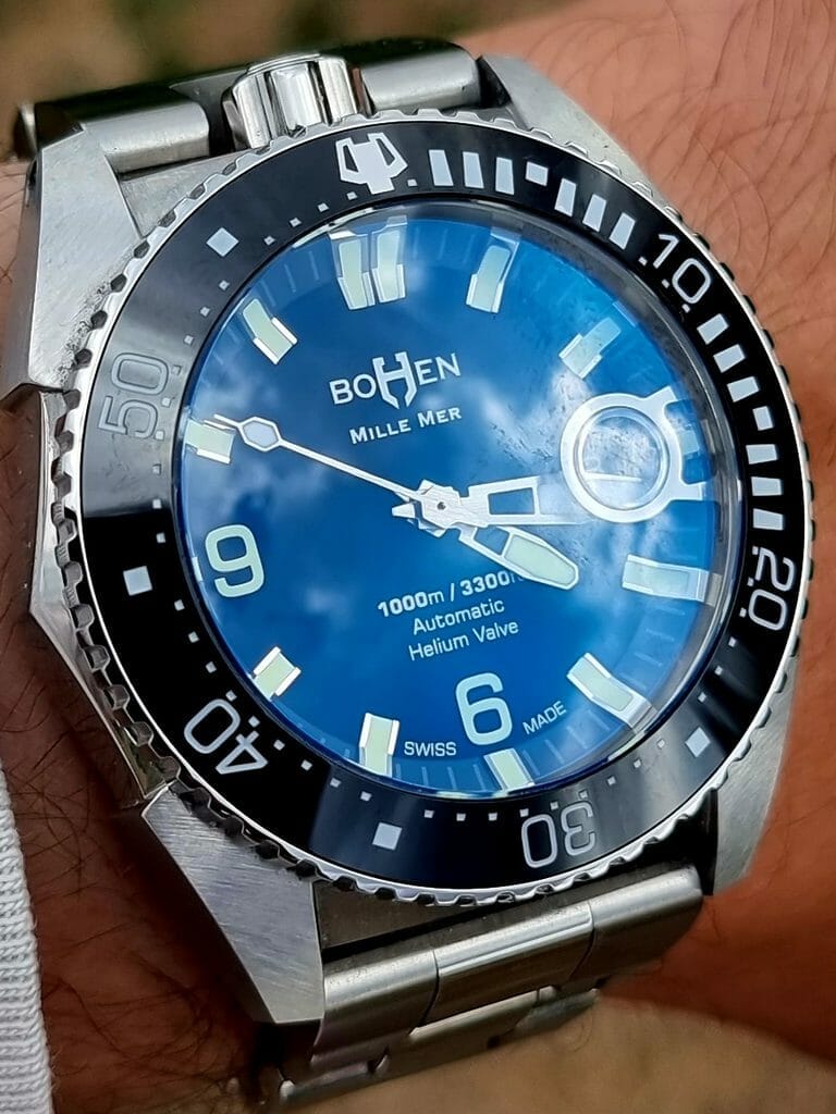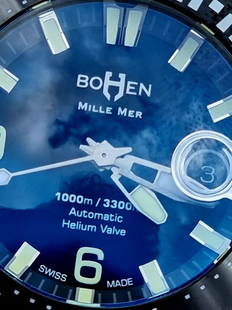 Le 7 avril 2020, je vois apparaître sur mon fil Instagram un modèle 3D d’une montre totalement inconnue : la Bohen Mille-Mer. Je clique sur le compte : très peu d’informations, très peu de contenus. Mais la montre m’impressionne. Je sens tout de suite la qualité et constate la technicité de la montre. Je « like » et je commente avec un simple « beautiful ». Et je m’abonne, bien sûr. Les semaines passent, et je like chaque post de Bohen. Je suis de plus en plus intrigué par cette marque, sortie de nulle part. Cela a dû se ressentir à travers mes « clics », car Blaise, le créateur de la marque, me contacte sur Instagram en message privé : « est-ce que je serais d’accord pour discuter par téléphone ? ». J’accepte.