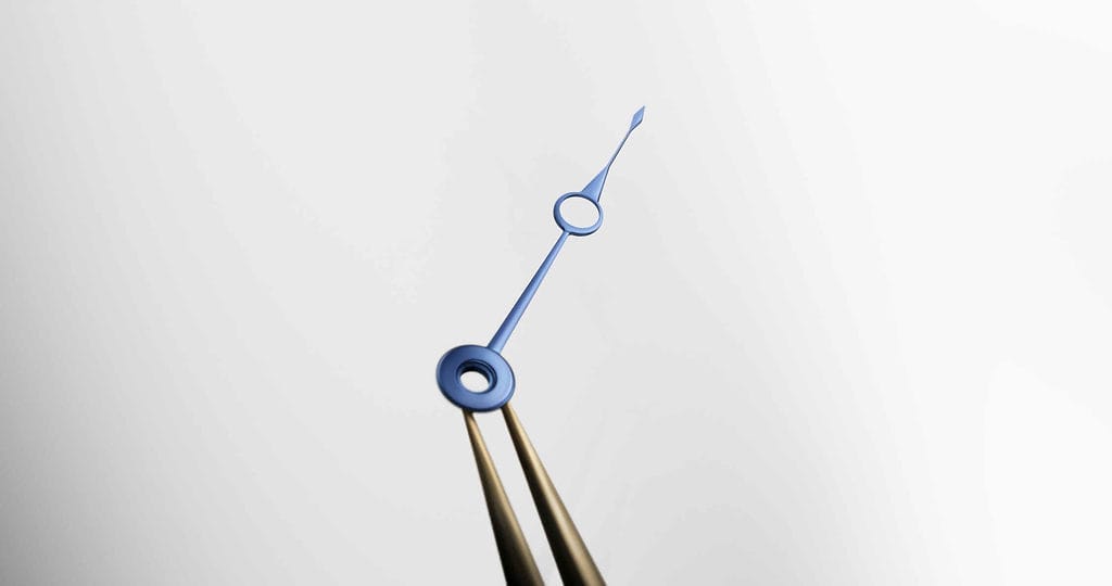 Dévoilée à Paris, là où tout a commencé en 1775, cette montre-bracelet reprend l’esprit des montres de poche de l’époque, notamment les n°246, 324 et 383 conservées au musée de la marque. Le cadran, en émail grand feu blanc, affiche une seule aiguille centrale à pomme évidée, bleuie à la flamme, légèrement incurvée. Elle effleure les chiffres arabes Breguet et la minuterie chemin de fer sectorisée, tous deux réalisés en émail noir petit feu. La précision de lecture atteint deux minutes, à l’image du modèle originel.