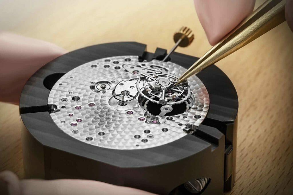 La boîte de 42,5 mm renferme le calibre à remontage automatique 581. Ce mouvement extraplat d’une épaisseur de 3 mm comporte 330 composants. Cette finesse est rendue possible par l’utilisation du rotor périphérique. Le balancier oscille à une fréquence de 4 hertz et bénéficie d’une impressionnante réserve de marche de 80 heures. Afin de lui apporter l’ensemble des dernières innovations, le calibre est muni d’une cage et d’un spiral en silicium. Ce matériau aux multiples propriétés résiste autant à la corrosion qu’à l’usure. Il est également insensible à l’influence des champs magnétiques.