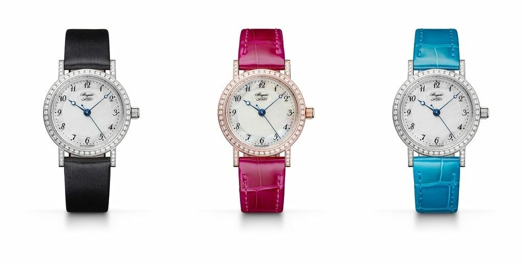 La nouvelle interprétation du modèle Classique Dame s’impose avec allure grâce à son cadran résolument contemporain ainsi qu’à son mécanisme permettant de changer de bracelet au gré des envies. Le modèle, disponible en or blanc et rose, rejoint la collection courante de Breguet.