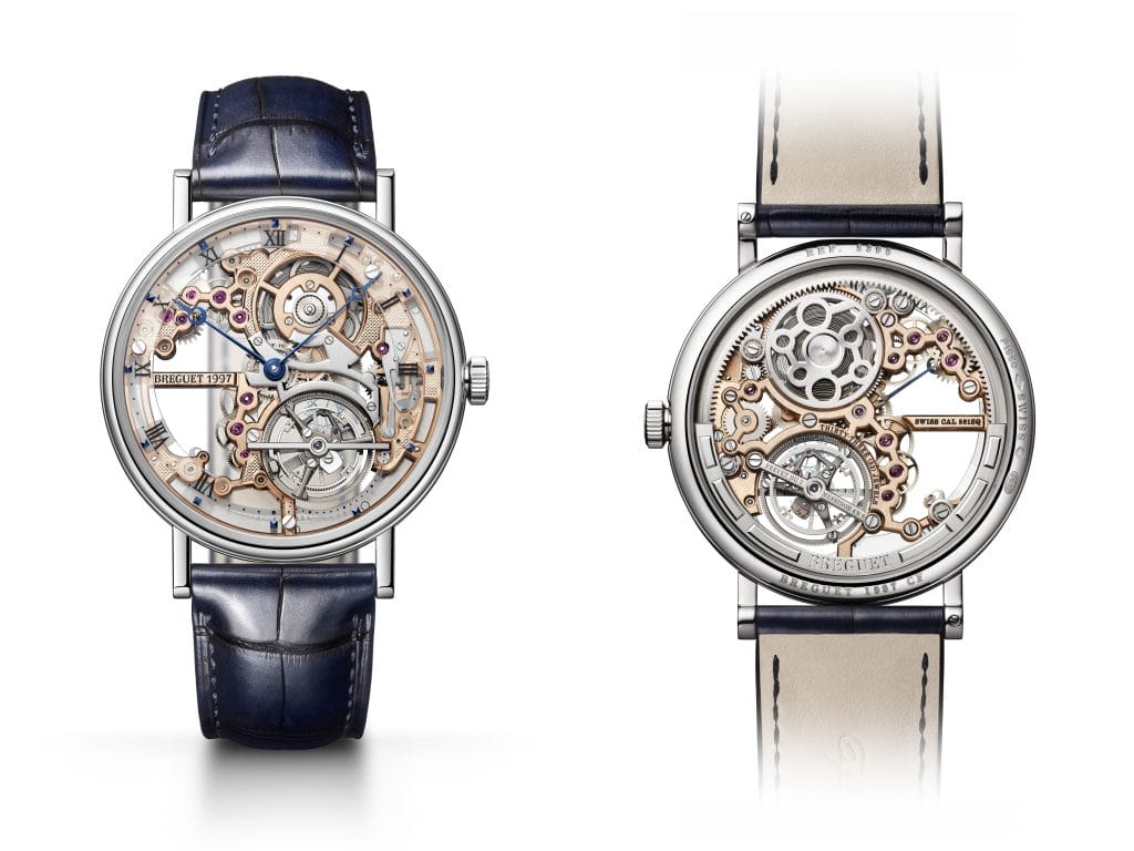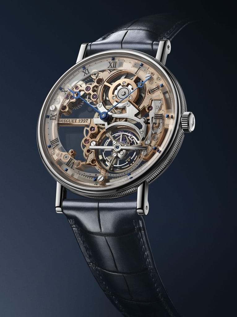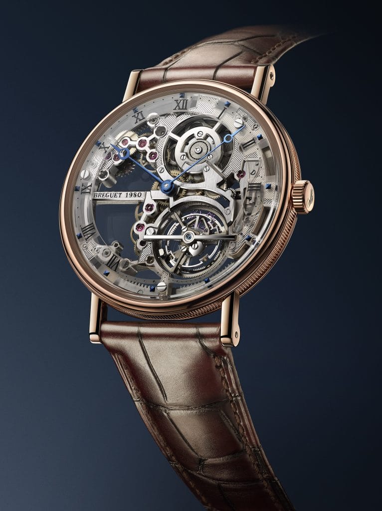 Pour sa nouvelle Classique Tourbillon Extra-Plat Squelette 5395, Breguet a choisi de squeletter son mouvement à tourbillon extra-plat de 3 mm d’épaisseur. Un exploit technique autant qu’artistique qui fait la part belle aux métiers d’art, au premier rang desquels se place l’horloger.