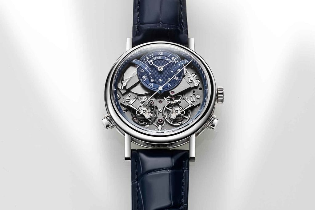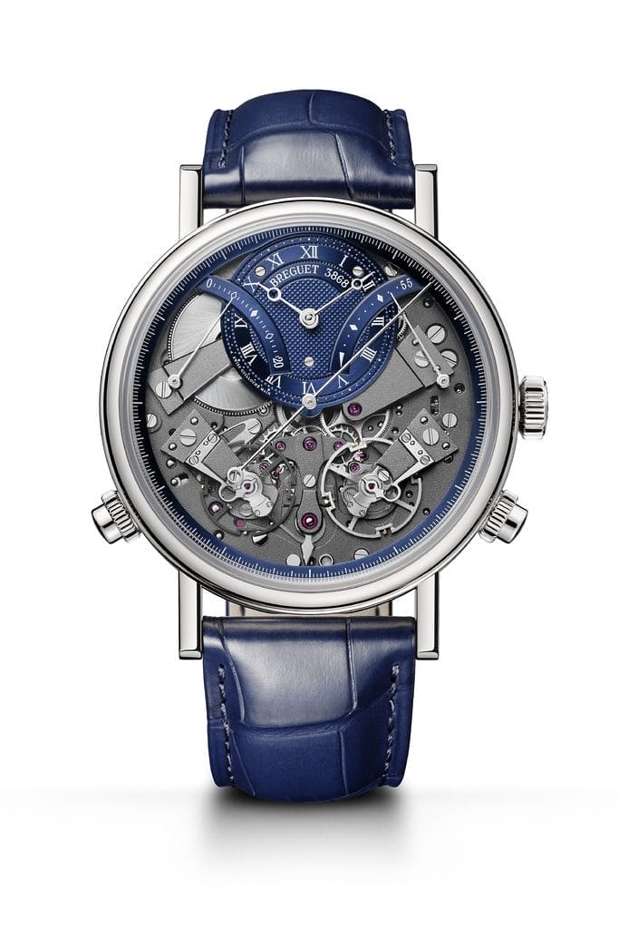 Intégrée à la collection Tradition, cette gamme de pièces, inspirée des montres de souscription et des montres à tact conçues par le fondateur de la Maison, accueille désormais la teinte emblématique « bleu Breguet ». Celle-ci habille la Tradition Chronographe Indépendant 7077, rehaussant son esthétique résolument contemporaine.